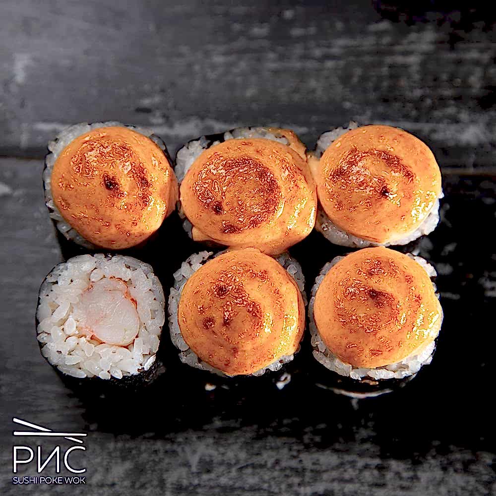 Состав: Тигровая креветка, сливочный сыр, икра Pin-Up огурец, соус майо