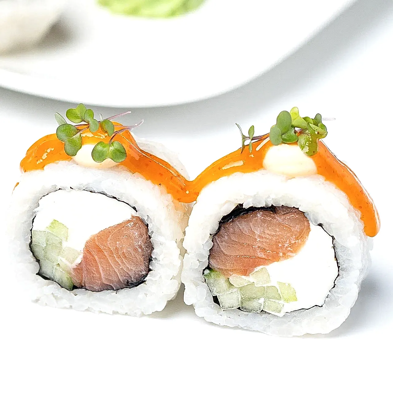 Состав: Лосось, сливочный сыр, огурец, соус спайси, Pin-Up чили-манго, микрозелень