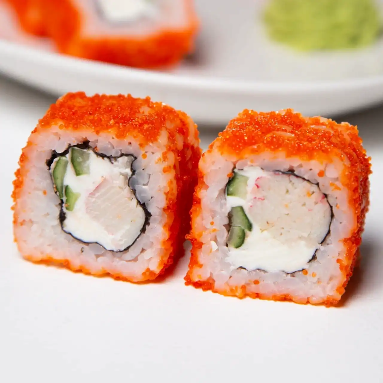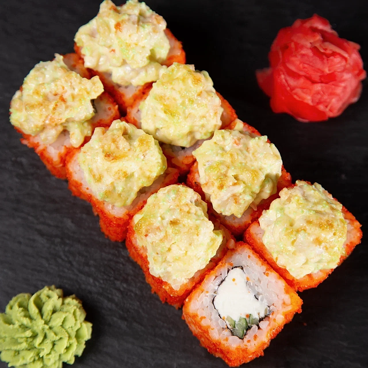 Состав: Pin-Up краб, сливочный сыр, огурец, икра тобико